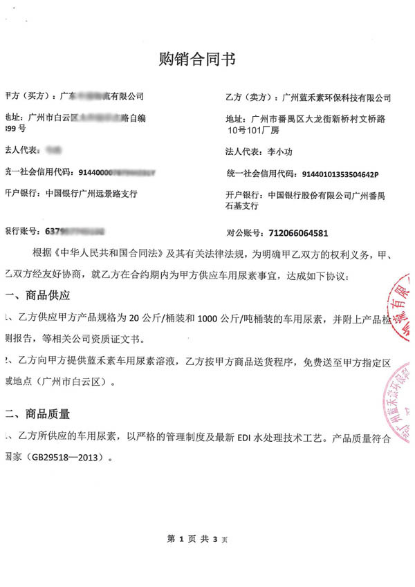 廣州藍禾素環??萍加邢薰?,是一家專業生產車用尿素溶液,尿素脫硝劑 氮氧化物還原劑企業集研發、生產、銷售為一體化,公司擁有22項車用尿素專利生產技術,銷售量全國top10,藍禾素產品系列并遠銷至歐美各國。